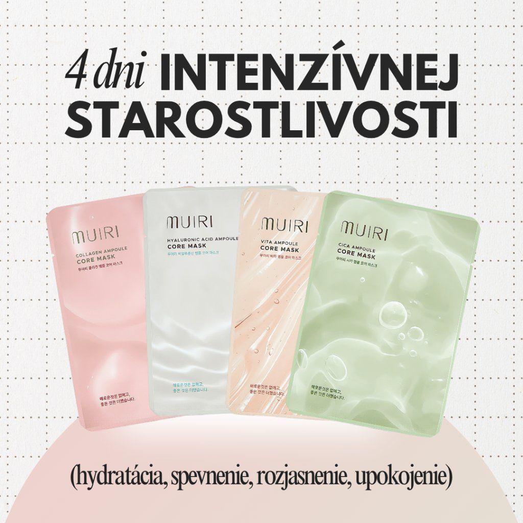 MUIRI Ampoule Core masky sú napustené vysoko koncentrovanou esenciou, ktorá sa svojou silou približuje ampule – teda najkoncentrovanejšej forme séra. V porovnaní s bežnou plátennou maskou tak poskytujú intenzívnejšiu starostlivosť.