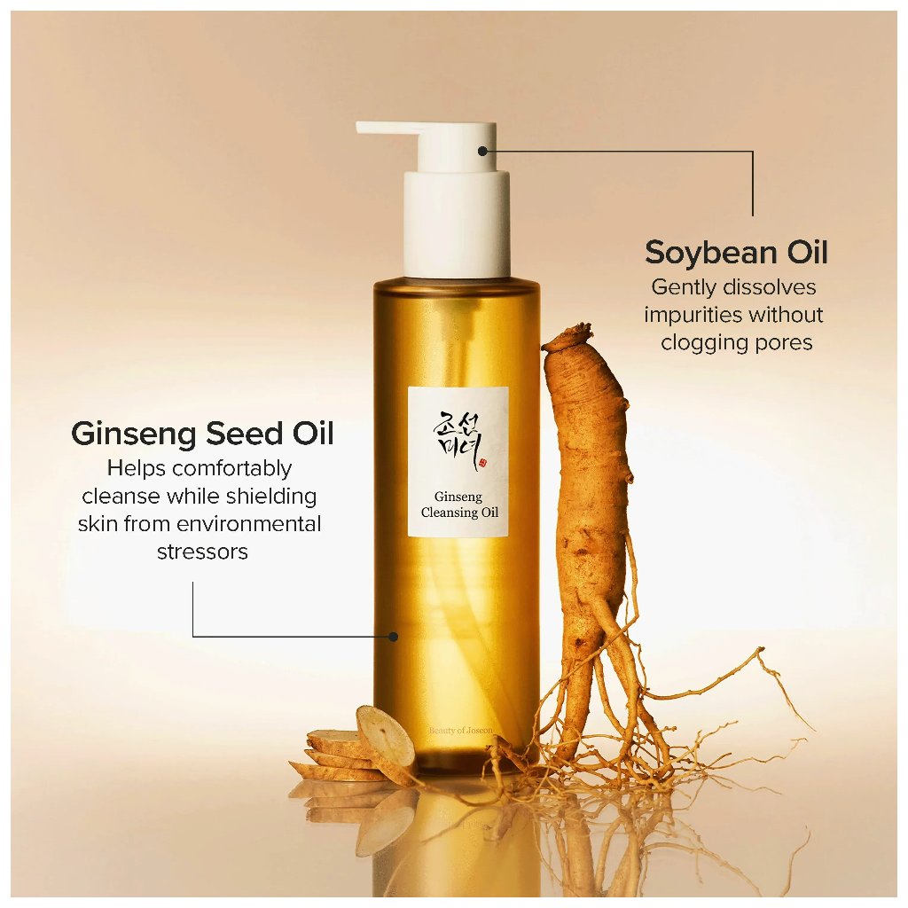 V Beauty of Joseon považujú čistenie za najdôležitejší krok v starostlivosti o pleť. Ak je zanedbané, nečistoty a kožný maz sa môžu hromadiť v póroch, čo môže viesť k zápalu pokožky. Čistiaci olej jemne emulguje a odstraňuje tieto nečistoty, čím zabezpečuje čistú a osvieženú pleť. V Beauty of Joseon opakovane testovali mnoho druhov oleja, aby našli dokonalý základový olej. Vybrali k pokožke priateľský olej zo sójových bôbov (Glycine Soja 50%) pre jeho ľahké, ale účinné čistiace vlastnosti, ktoré efektívne odstraňujú nečistoty, maz a zvyšky make-upu. Zloženie je obohatené o olej zo semien ženšenu (Ginseng Seed Oil 0,1%), ktorý chráni pokožku pred vonkajšími nepriaznivými vplyvmi a dodá odličovaciemu oleju špecifickú vôňu, ktorá premení vašu rutinu starostlivosti o pleť na pokojný rituál.