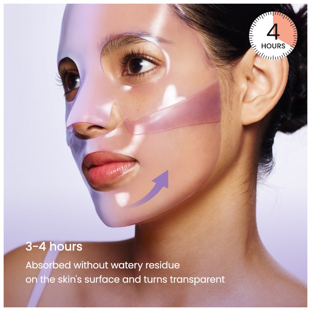 Hydrogél sa pri kontakte s pokožkou postupne stáva priehľadný, čo znamená, že aktívne látky prenikajú do pokožky – je vhodná na použitie počas 3–4 hodín cez deň alebo cez noc ako intenzívny „spa boost“ pre pleť.