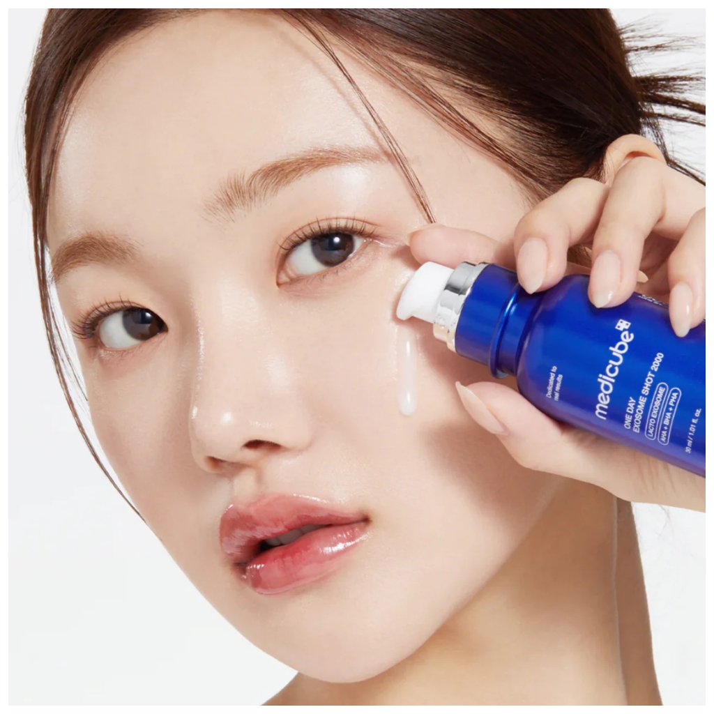 Objavte silu inovatívnych aktívnych zložiek v sére Medicube One Day Exosome Shot Pore Ampoule 2000 – intenzívnej starostlivosti, ktorá viditeľne zlepšuje štruktúru pleti, zjemňuje póry a dodáva pleti zdravý, žiarivý vzhľad. Toto luxusné sérum kombinuje technológiu exozómov z mlieka s AHA, BHA a PHA kyselinami, ktoré jemne odstraňujú odumreté bunky a zlepšujú absorpciu účinných látok. Vďaka tomu pokožka vyzerá hladšie, čistejšie a sviežejšie už po niekoľkých aplikáciách.