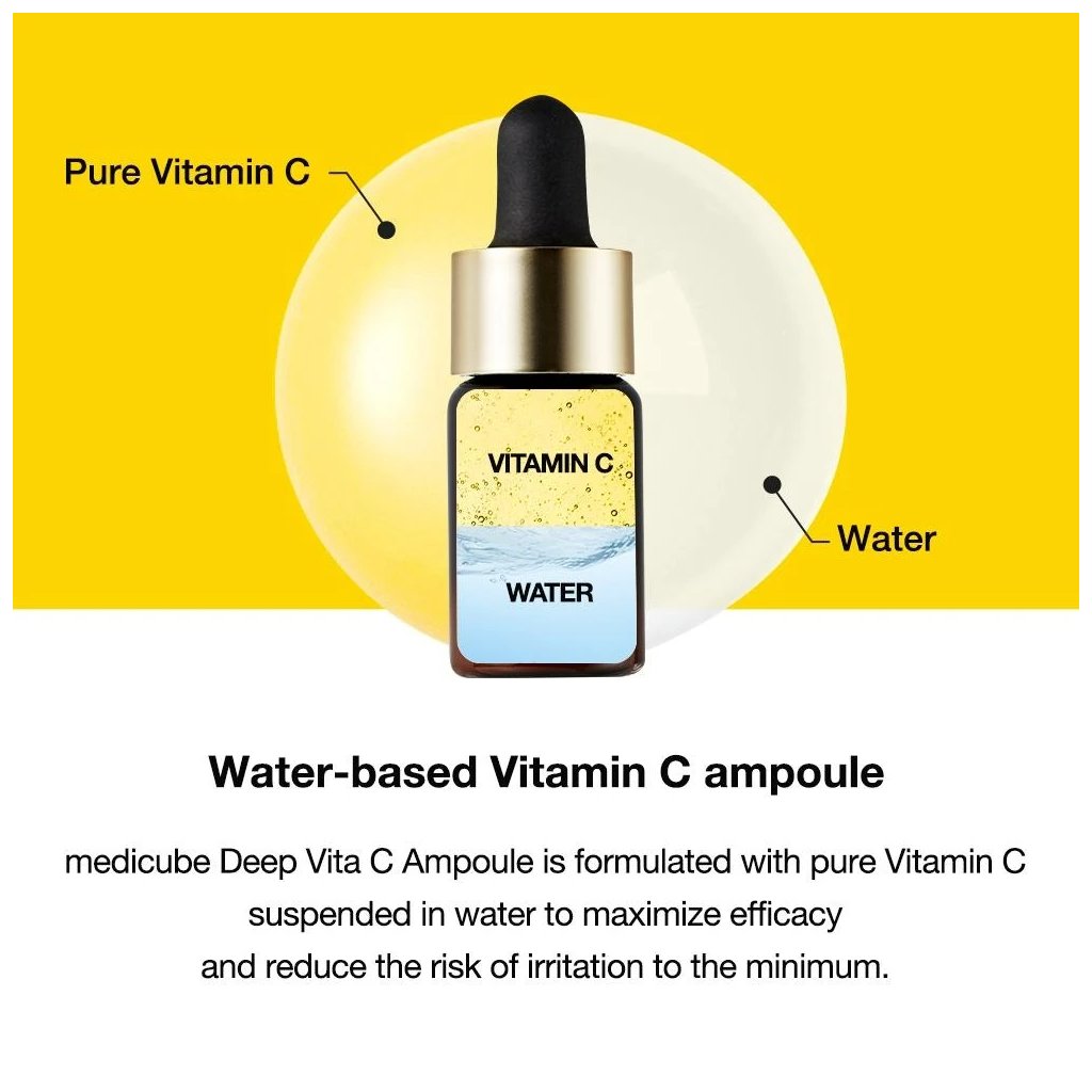 Medicube Rozjasňujúce sérum s vitamínom C účinne znižuje výskyt hyperpigmentácie a tmavých škvŕn, zjednocuje tón pleti a dodáva jej žiarivý vzhľad vďaka inhibícii tvorby melanínu. Táto hypoalergénna, certifikovaná ampulka na vodnej báze s obsahom 14,5 % vitamínu C predstavuje dokonalý elixír pre rozjasnenie, zjednotenie a spevnenie pleti.