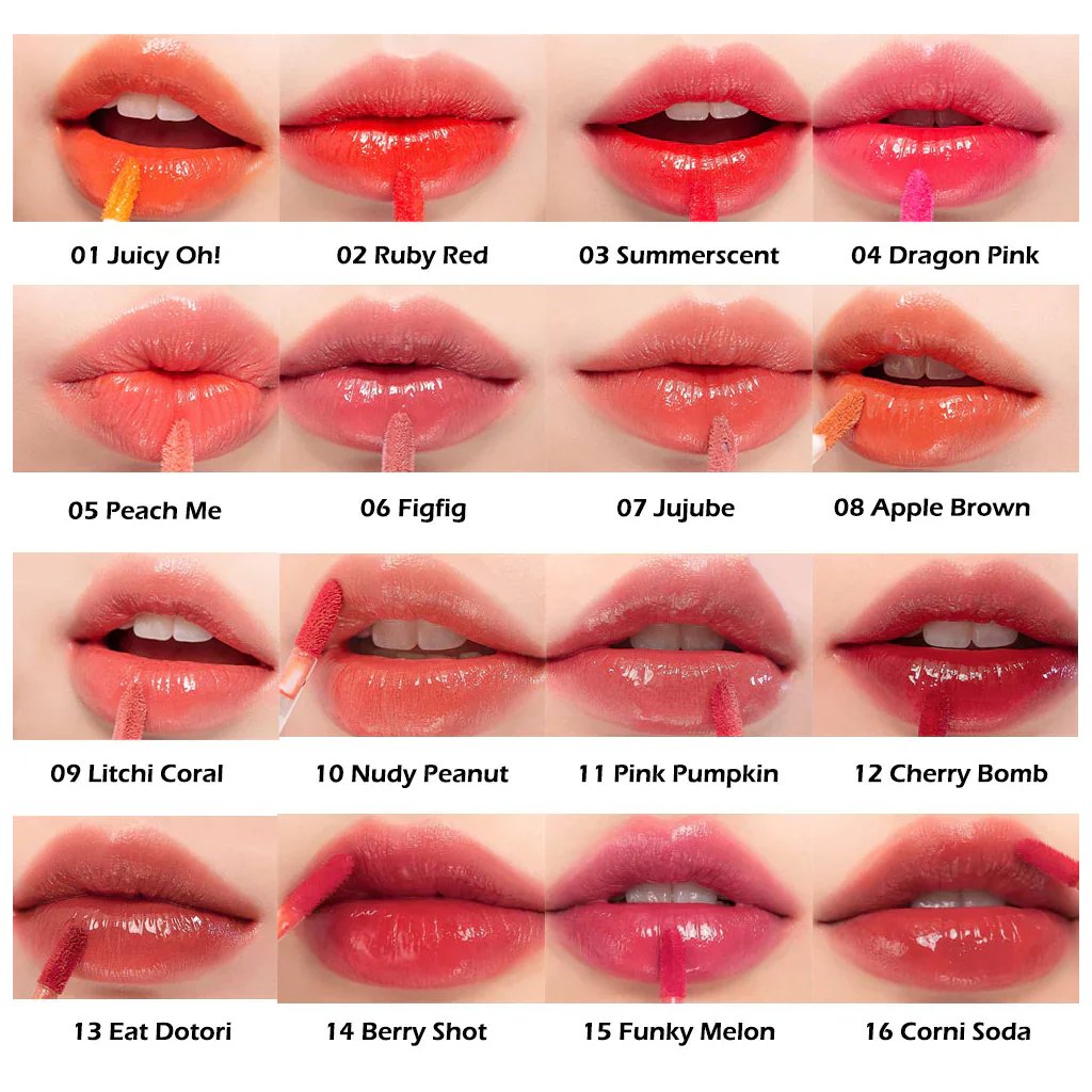 Dlhotrvajúci lesklý tint na pery od rom&nd je prípravok podobný rúžu, ktorý zanecháva na perách intenzívny pigment po celé hodiny a pritom vyzerá veľmi prirodzene. Jeho ľahká textúra sa neobtláča a vydrží až 12 hodín – bez vysušenia či rozmazávania.