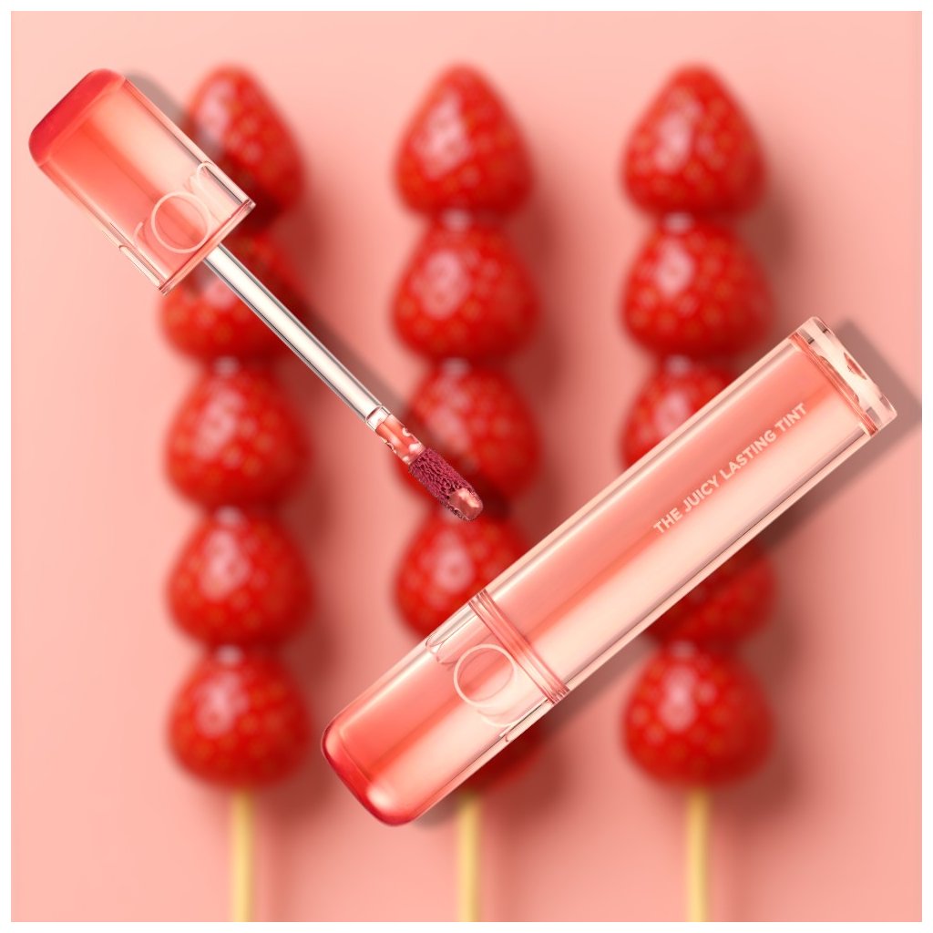 Inšpirovaný trendy pochúťkou "tanghulu" - ovocia napichnutého na bambusovej špajdli a obaleného v chrumkavej, sklovitej cukrovej poleve. Presne také lesklé, ovocné a šťavnaté odtiene ponúka tint od rom&nd.